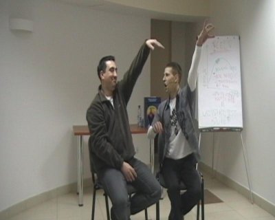 | Michał pokazuje przyszłym trenerom NLP jak rozpoczynać szkolenia, październik 2007 |